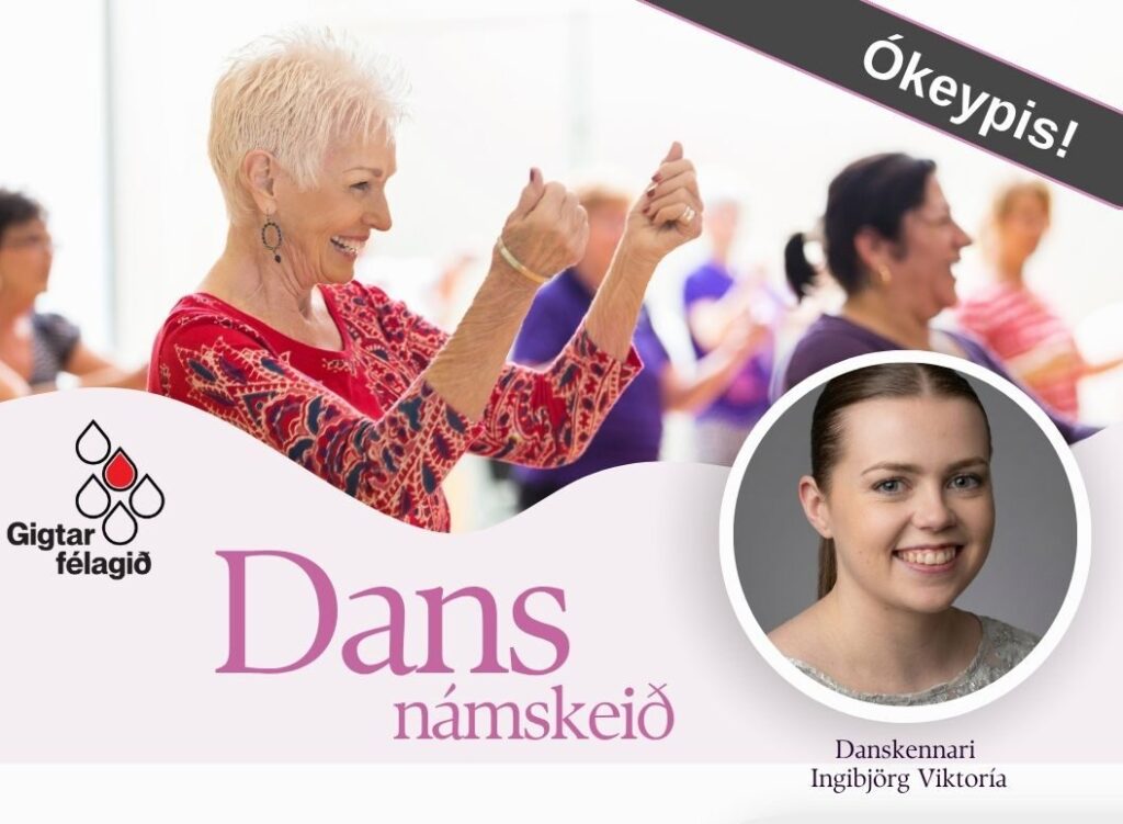Í tilefni af 50 ára afmæli Gigtarfélagsins í ár þá bjóðum við upp á dansnámskeið að kostnaðarlausu. Námskeiðið verður á miðvikudögum kl. 14:00-14:40. 22. apríl til 27. maí. Námskeiðið er fyrir alla sem finnst gaman að hreyfa sig í takt við tónlist. Dönsum létt spor við fjölbreytt og skemmtileg lög. Markmiðið er að bæta samhæfingu, […]