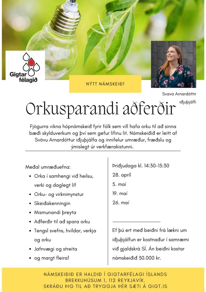 Fjögurra vikna hópnámskeið fyrir fólk sem vill hafa orku til að sinna bæði skylduverkum og því sem gefur lífinu lit. Námskeiðið er leitt af Svövu Arnardóttur iðjuþjálfa og innifelur umræður, fræðslu og ýmislegt úr verkfærakistunni. Meðal umræðuefna er: Orka í samhengi við heilsu, verki og daglegt líf. Orku- og virknimynstur. Skeiðakenningin. Mismunandi þreyta. Aðferðir til […]